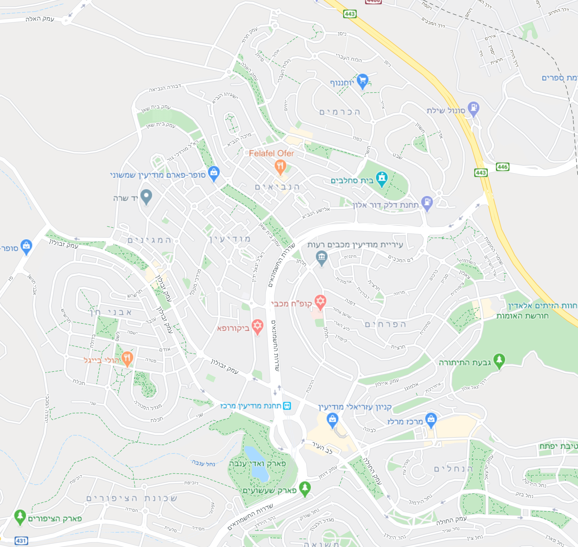 מודיעין, רעות, מכבים, שוהם וכל הישובים באזור זה.